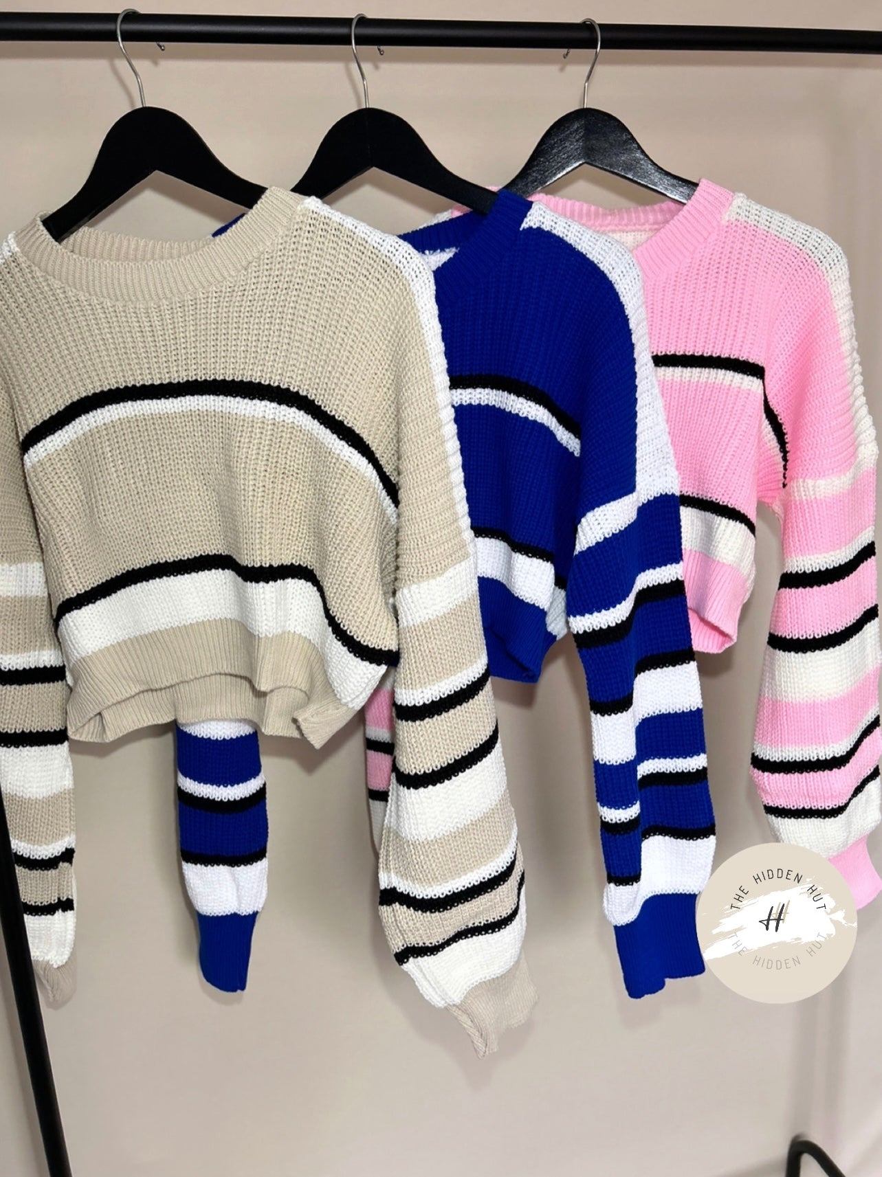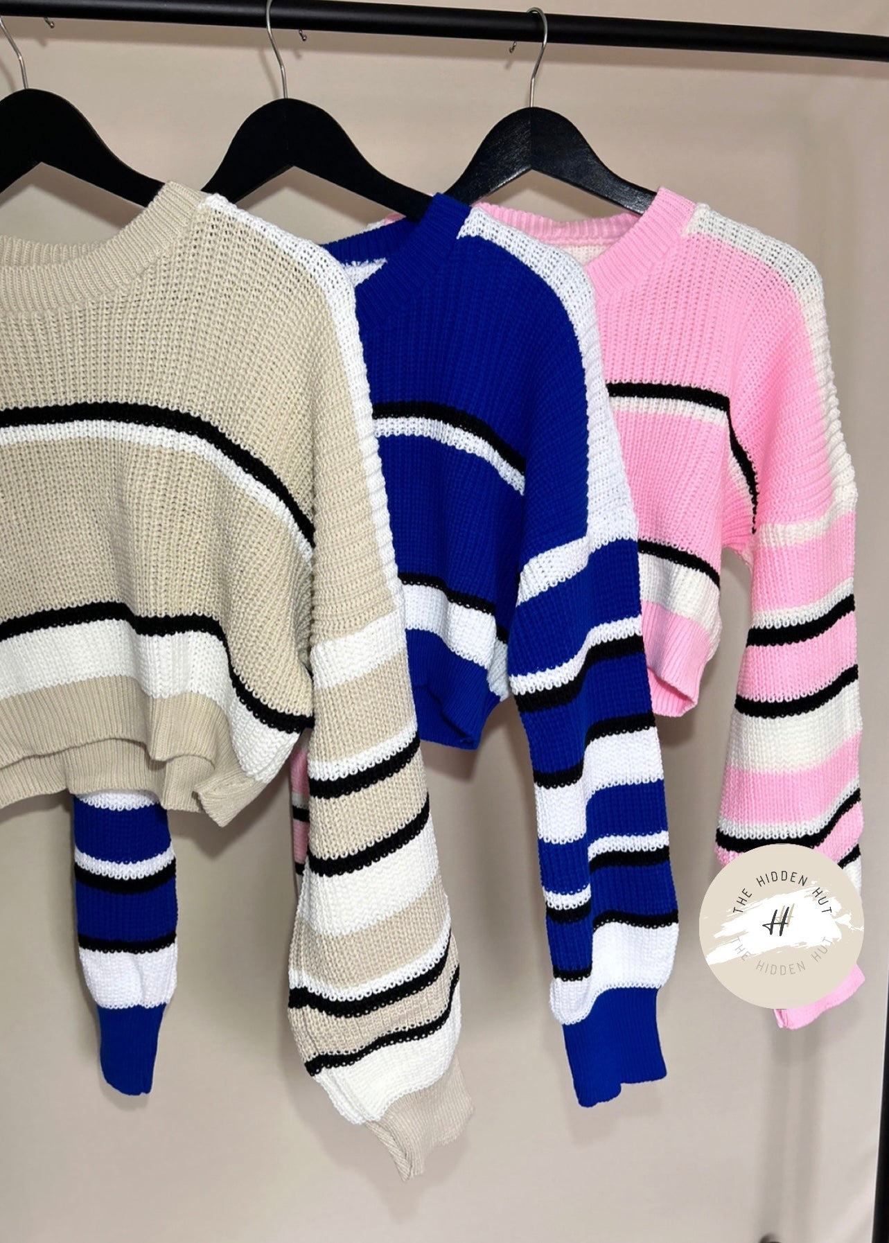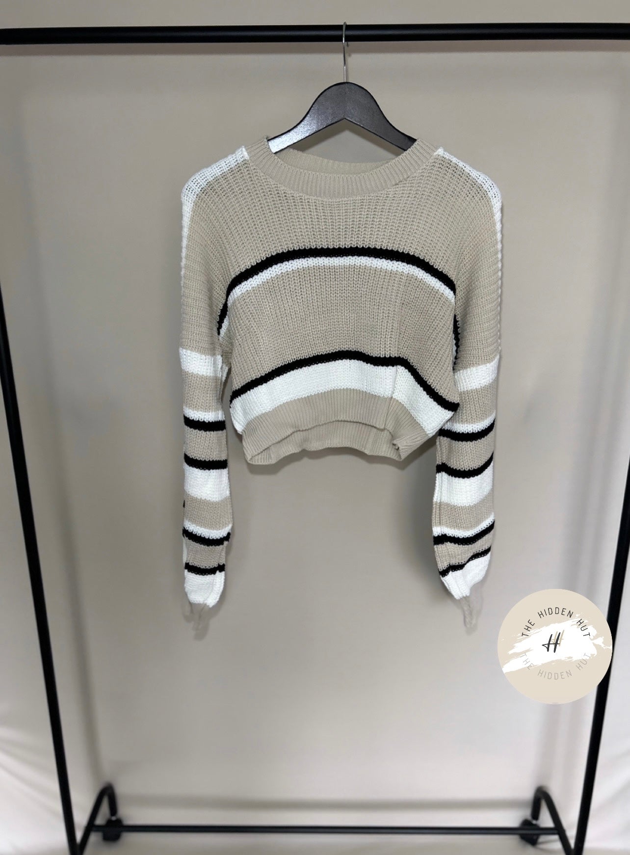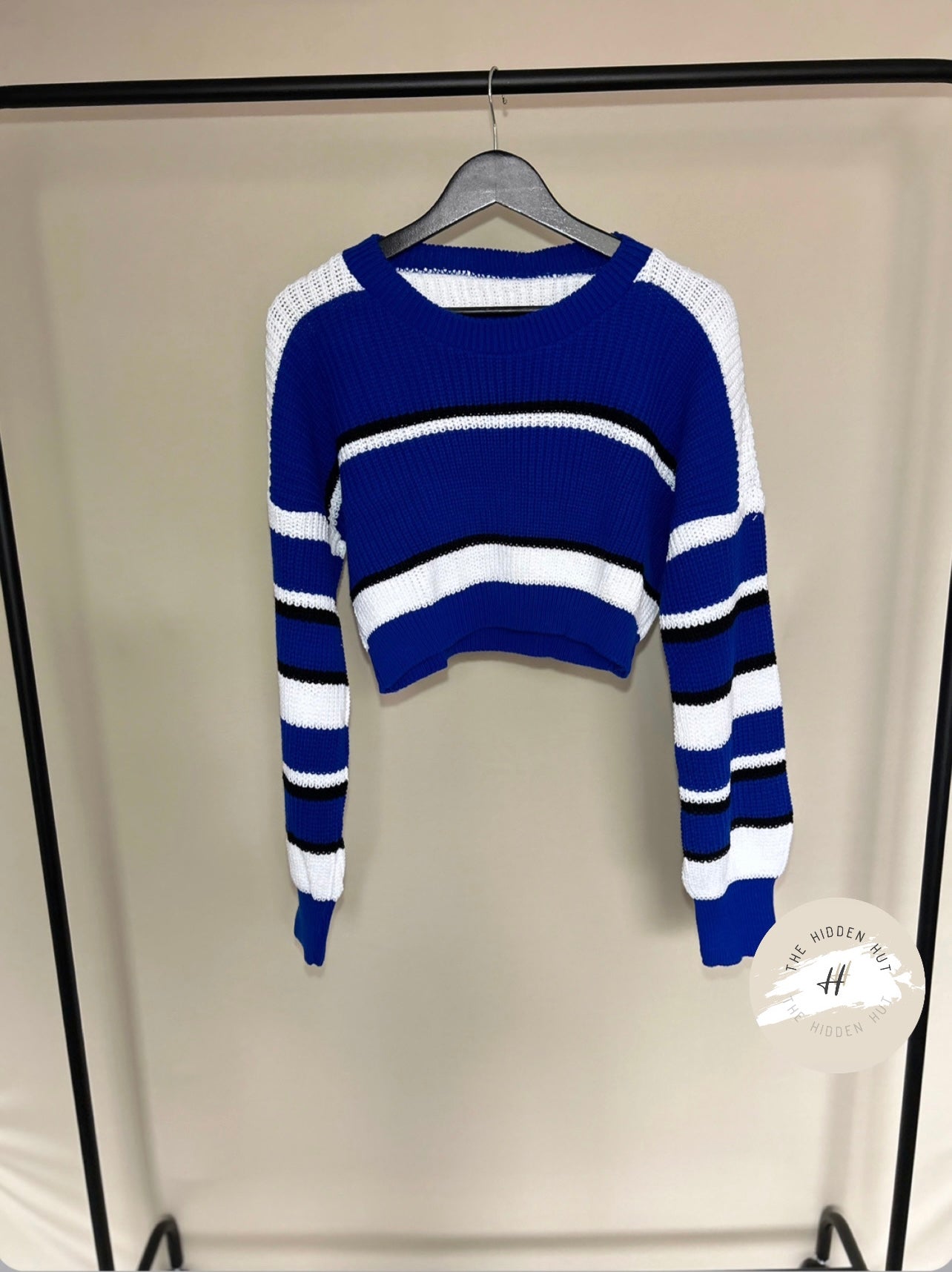 As a warm and cosy knitted sweater, our Cropped Striped Knit Jumper is the perfect blend of style and functionality. Featuring a classic crew neck design and a striped pattern, this jumper is sure to keep you warm and stylish in colder weather. Upgrade your wardrobe with this must-have piece.