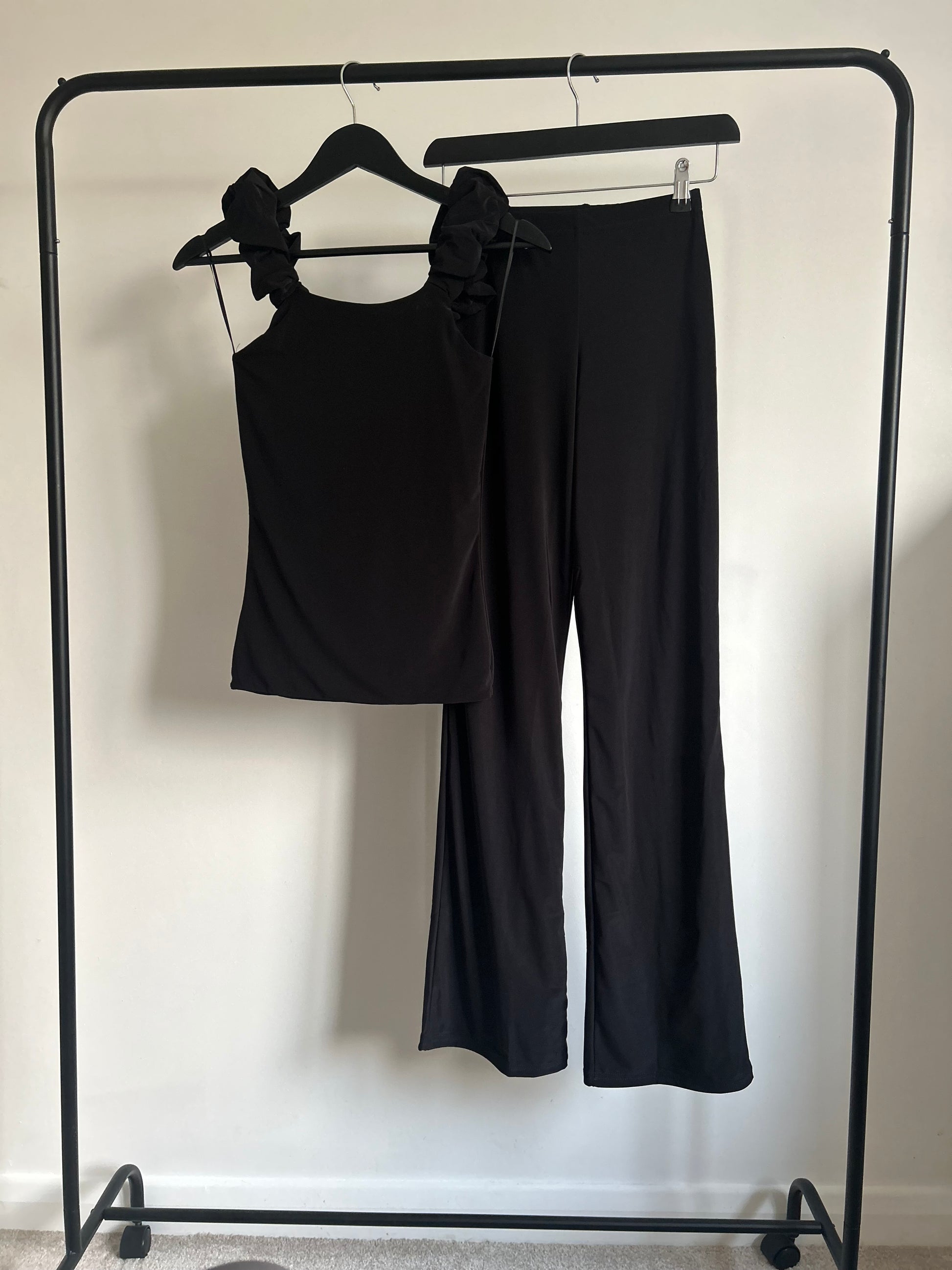 FRILL SLEEVE FLARED SLINKY CO-ORD