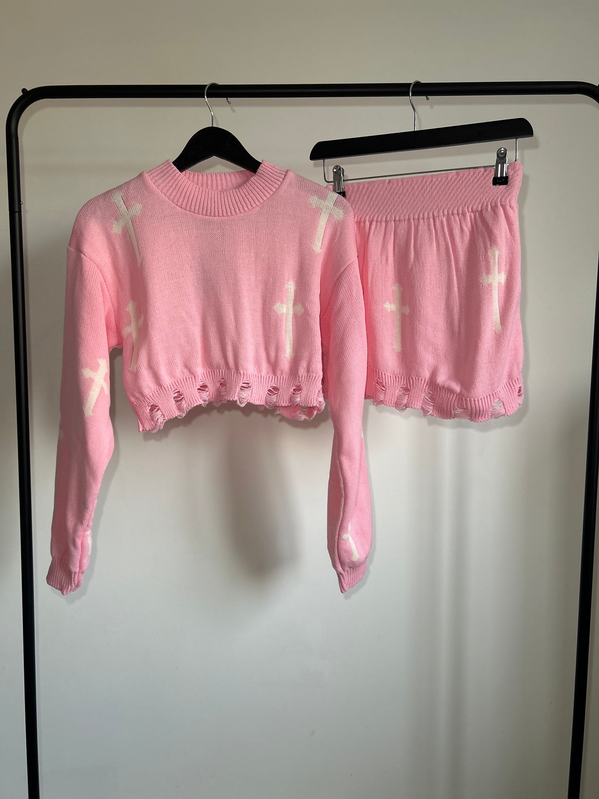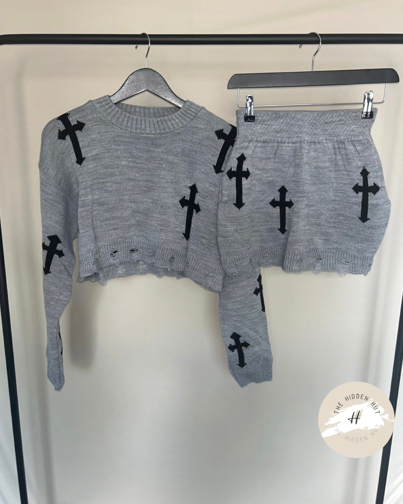 KNITTED CROSS SKIRT AND JUMPER CO-ORD
