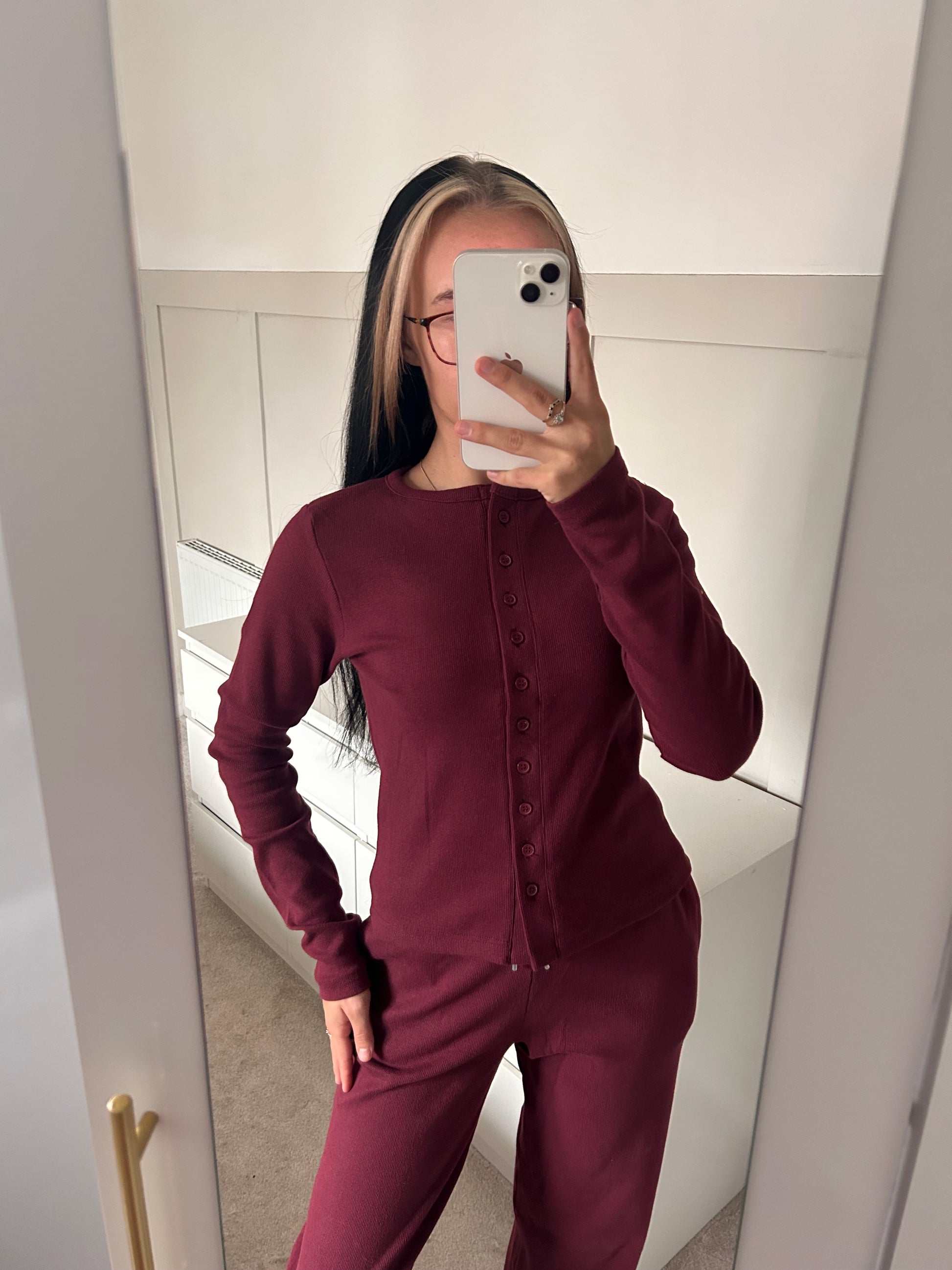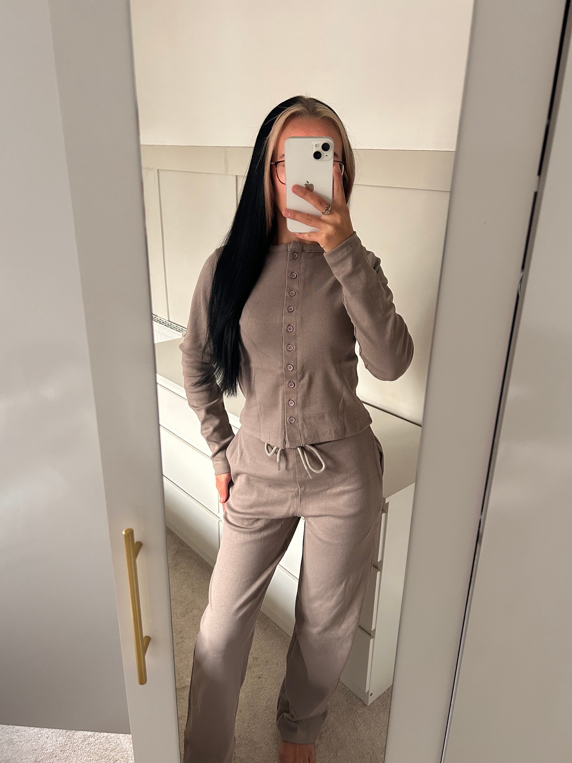 Expertly designed for effortless style, our LONG SLEEVE BUTTON UP CO-ORD features a ribbed texture with front button detailing. The crop top and wide leg trousers offer a comfortable and flattering fit, with elasticated waistbands for ease of wear. Made with 95% cotton and 5% elastane for ultimate comfort and quality.