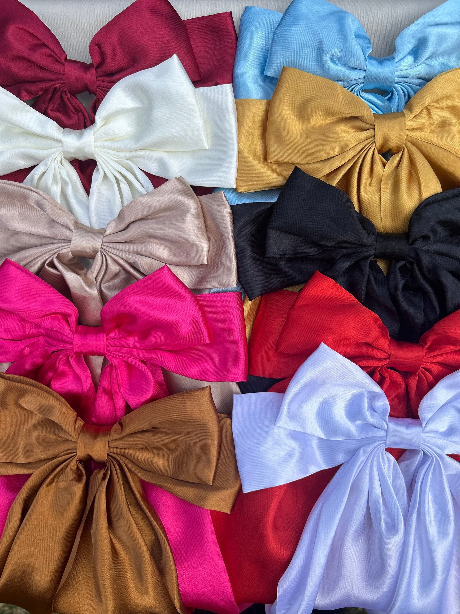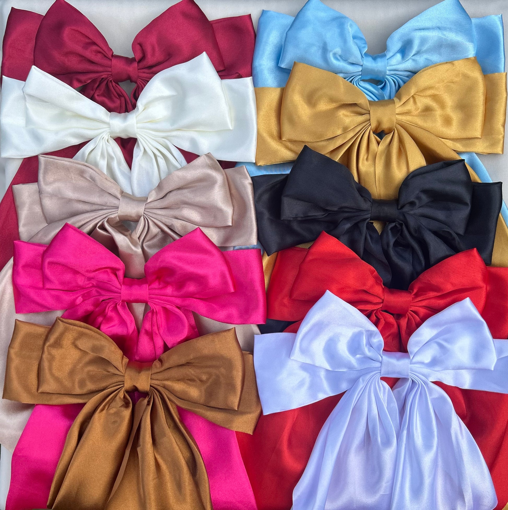 Elevate your hair game with our oversized satin hair bows. Made from luxurious satin fabric, these large clip bows add a touch of elegance to any look. Perfect for completing a formal outfit or adding a pop of color to your everyday style. Stand out with our statement-making hair bows.