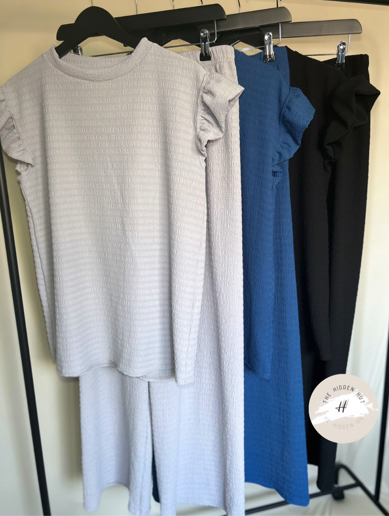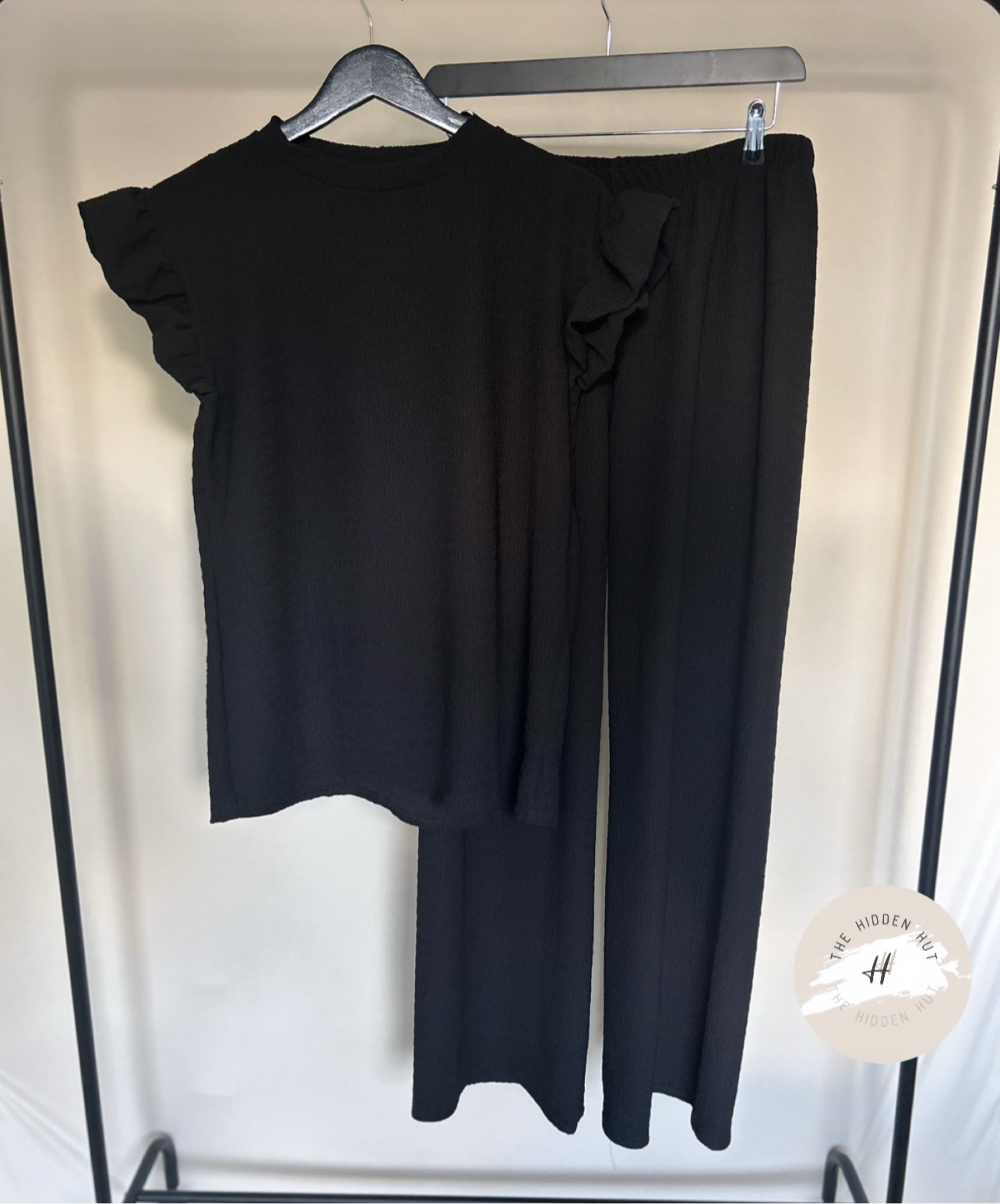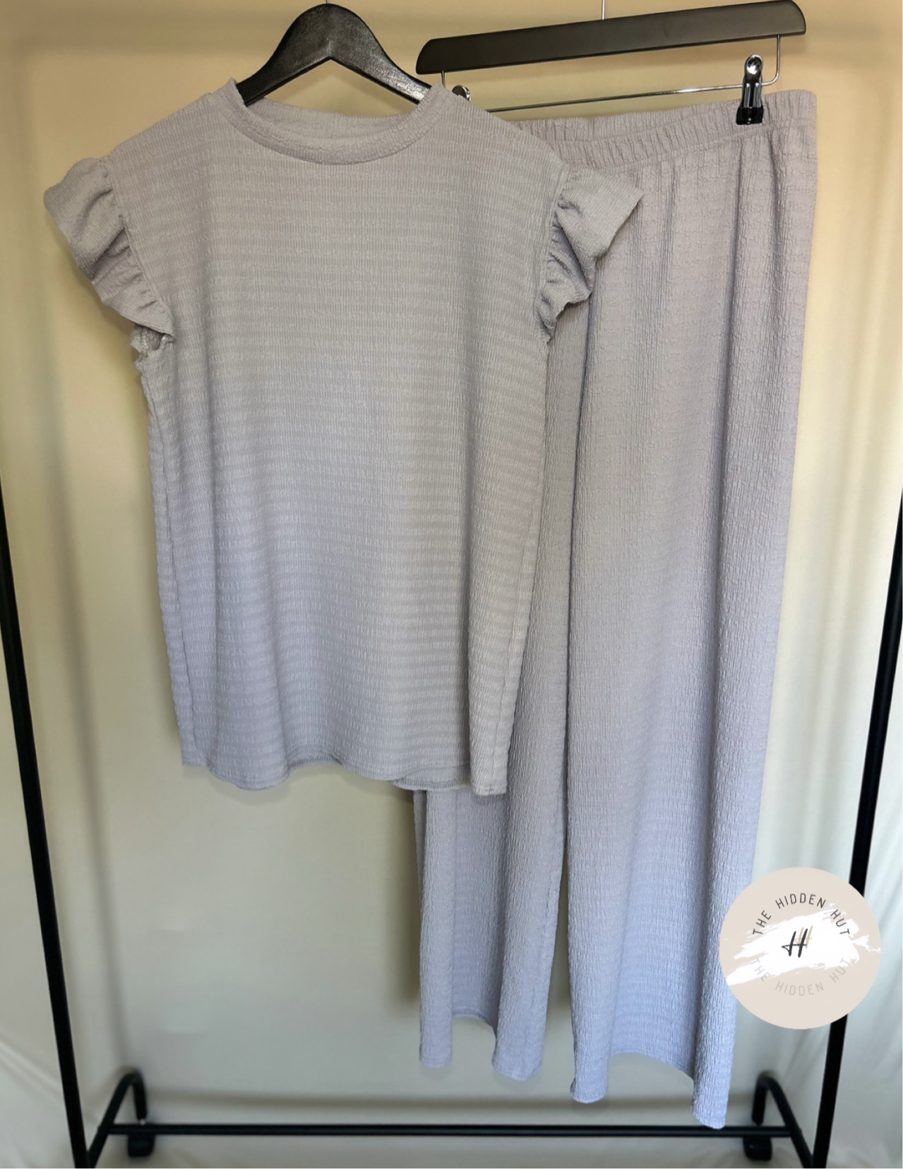 PLUS SIZE TEXTURED FRILL SLEEVED LOUNGE SET