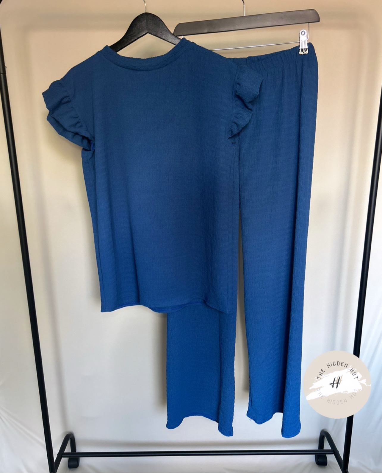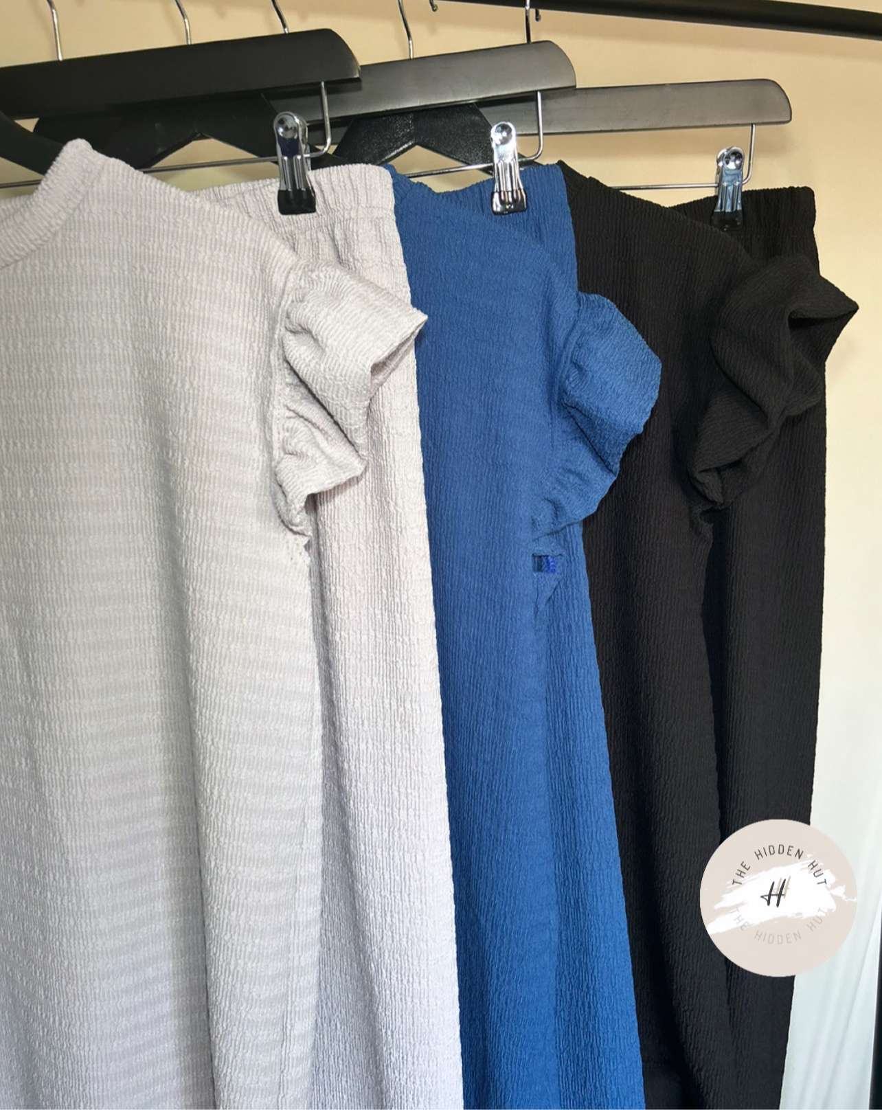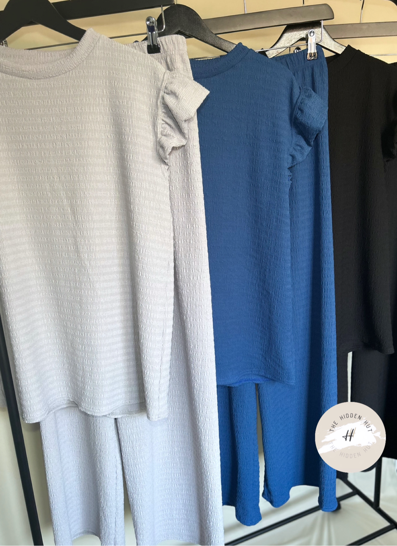 PLUS SIZE TEXTURED FRILL SLEEVED LOUNGE SET