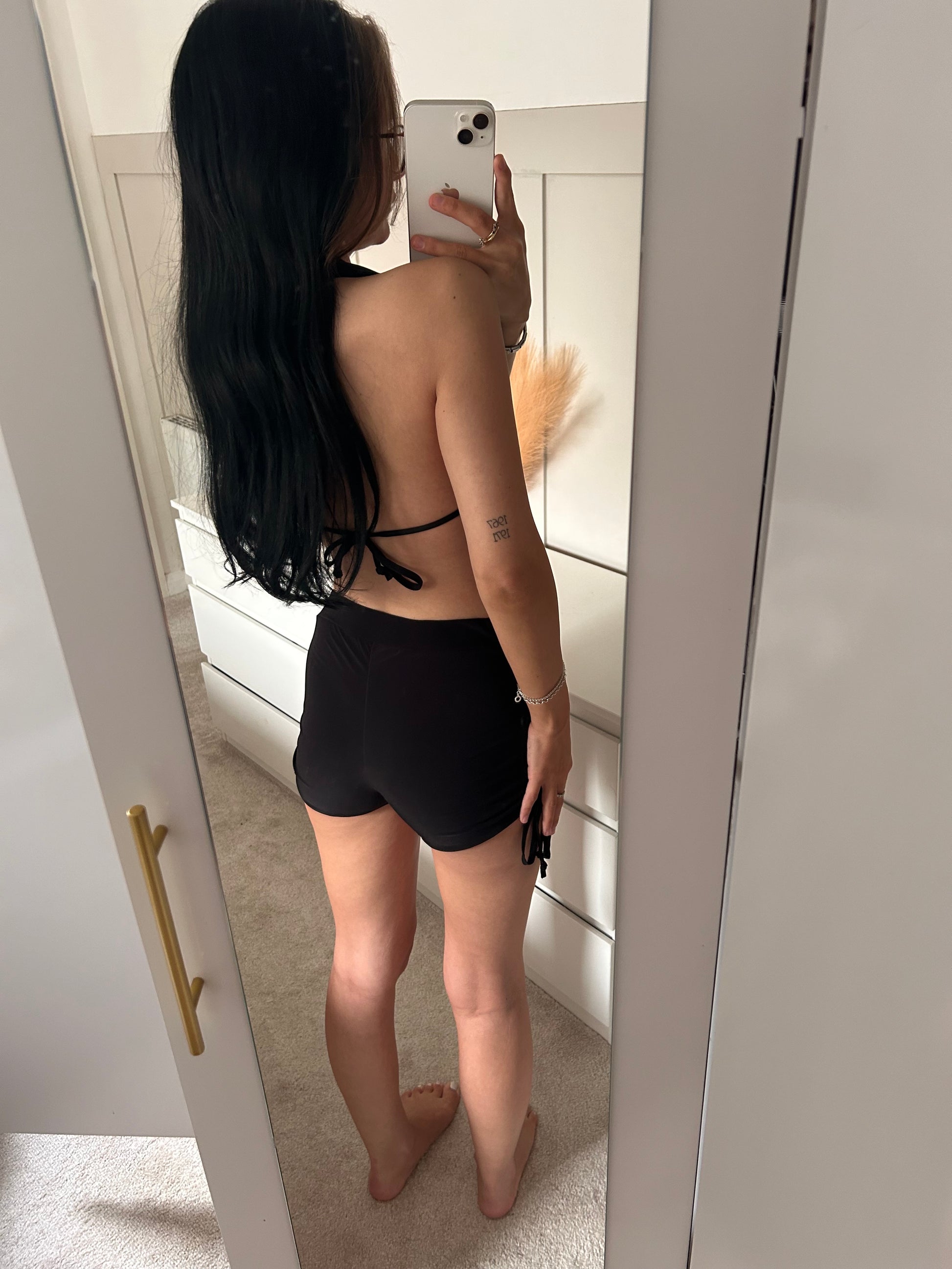 This set features a halter neckline and adjustable straps for a customizable fit. The ruched shorts add extra detail for a flattering look. Perfect for a day at the beach or a night out.