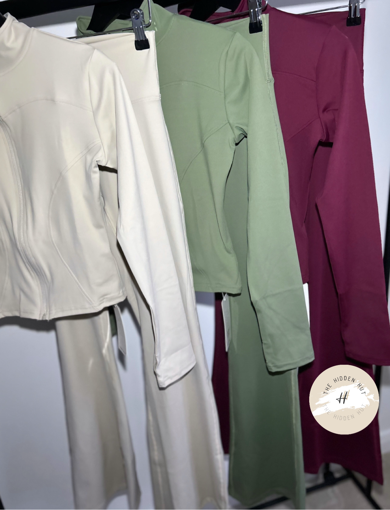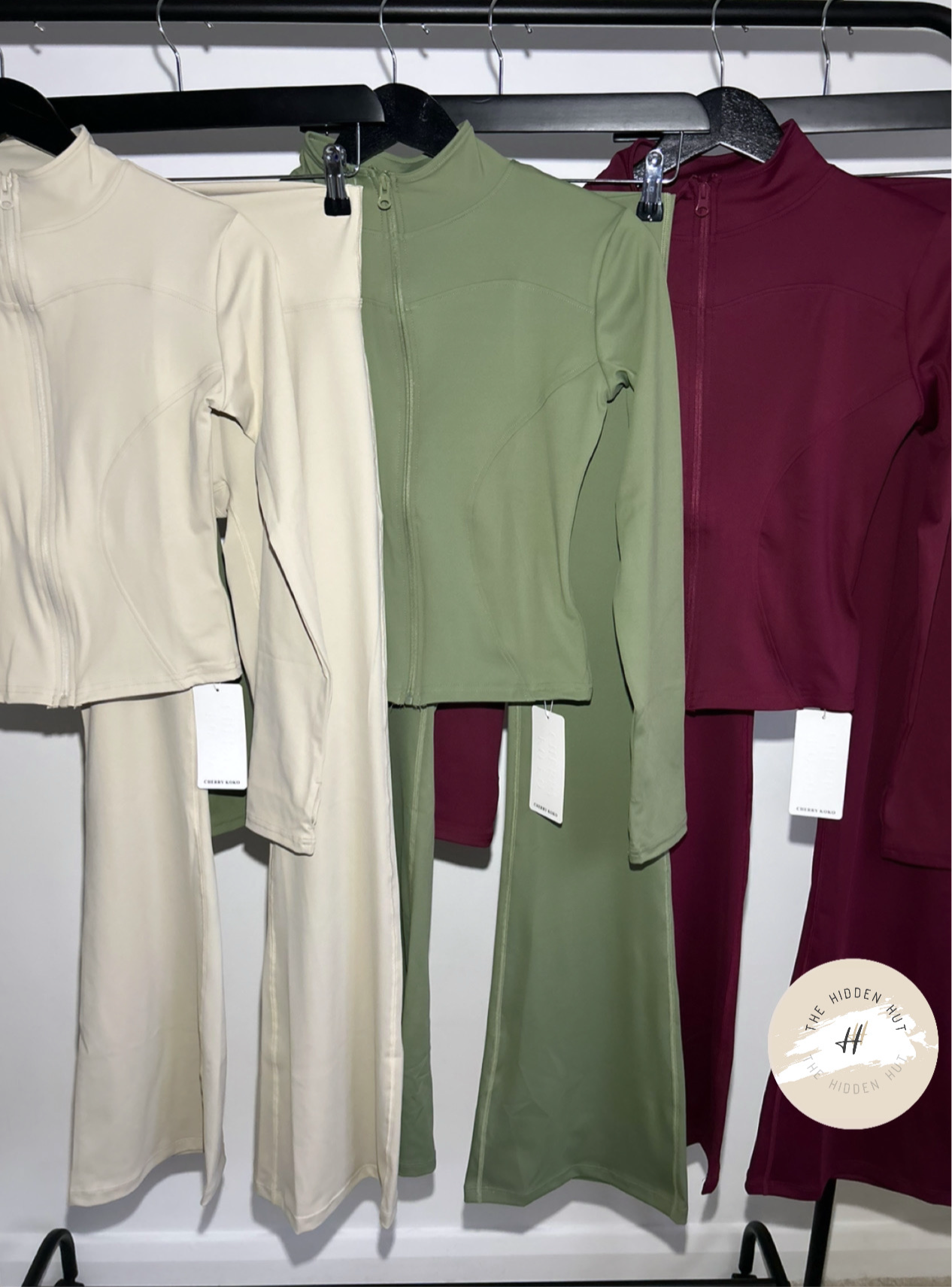 SLINKY ZIP UP GYM JACKET AND FLARES SET