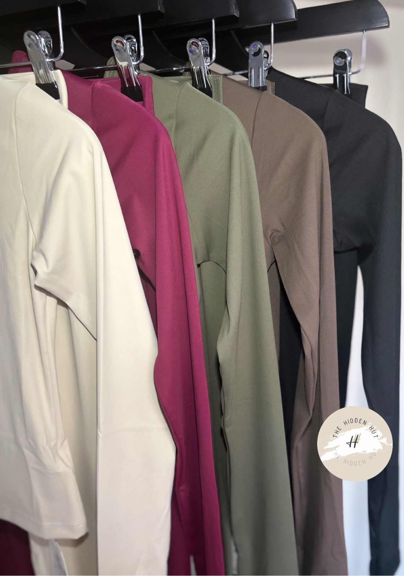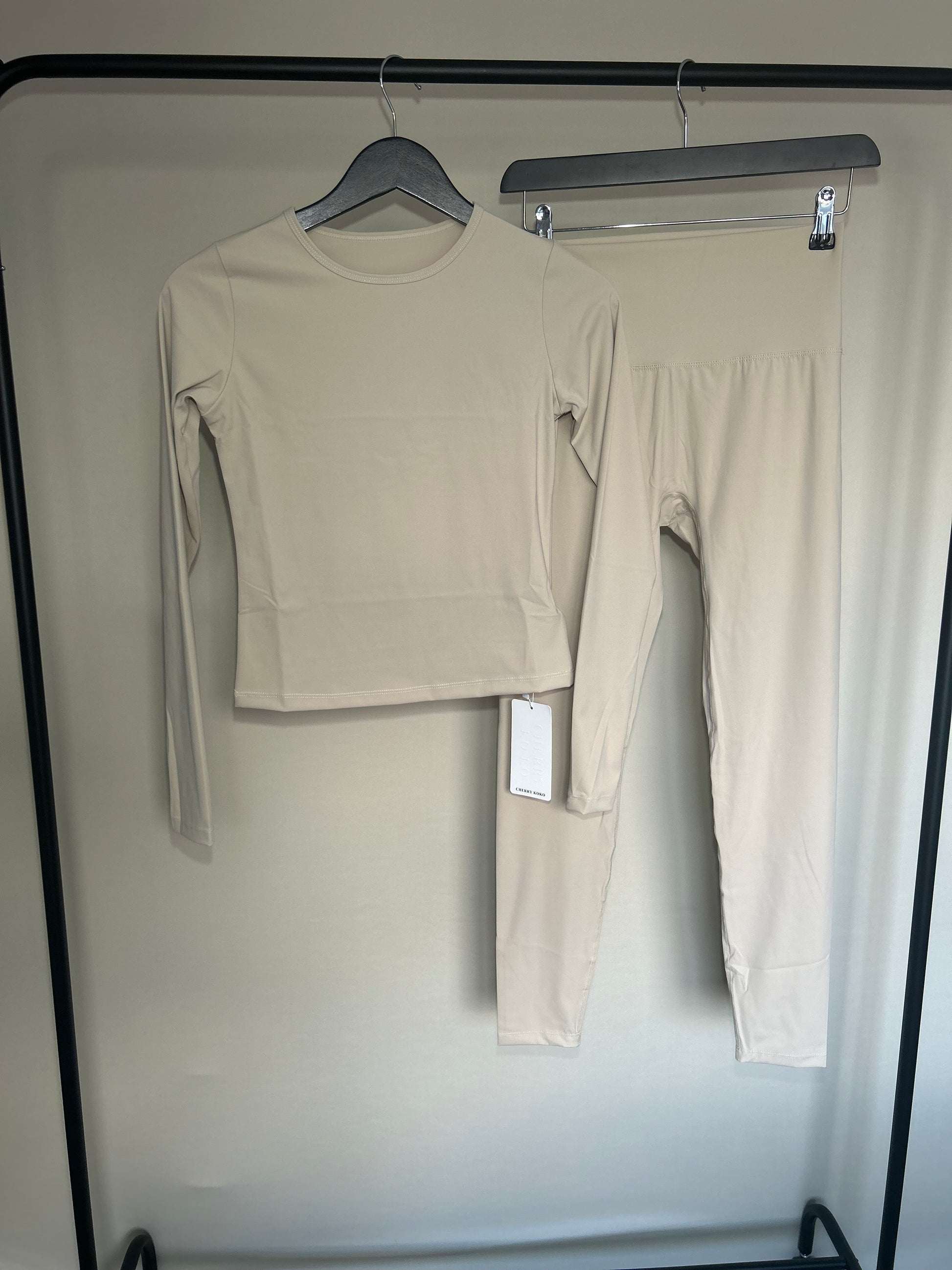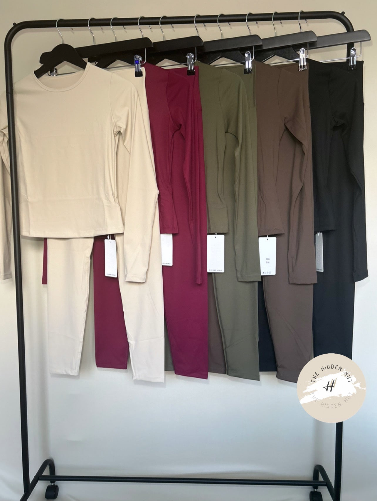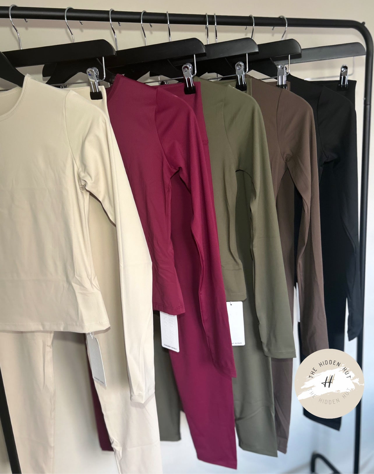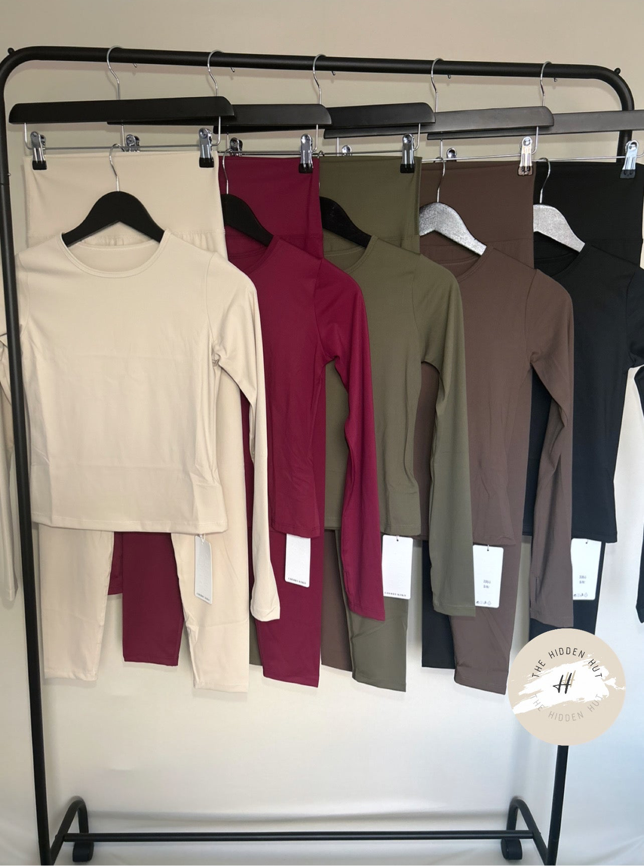 Crafted from a soft, buttery material, our LONG SLEEVED SLINKY GYM SET offers unbeatable comfort during workouts. The super stretchy design allows for unrestricted movement, while the high waisted leggings provide a flattering fit. Perfect for your next gym session.
