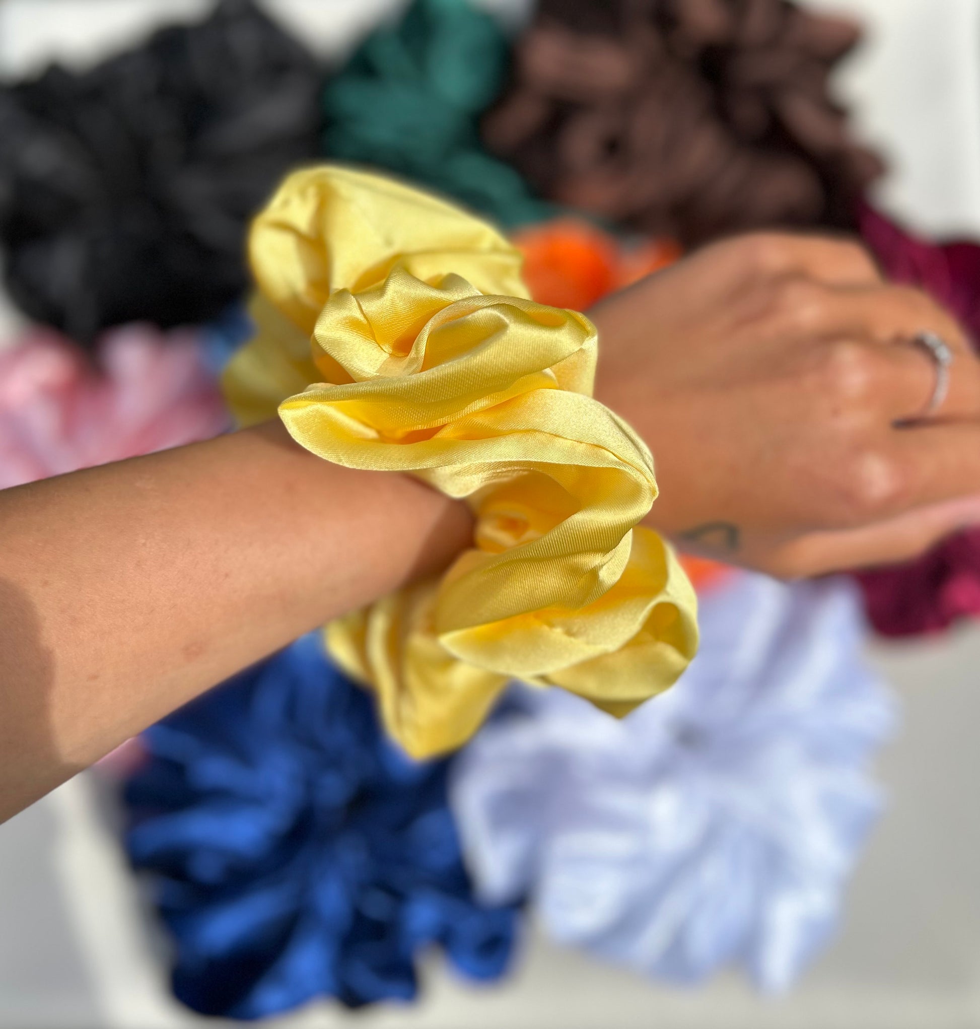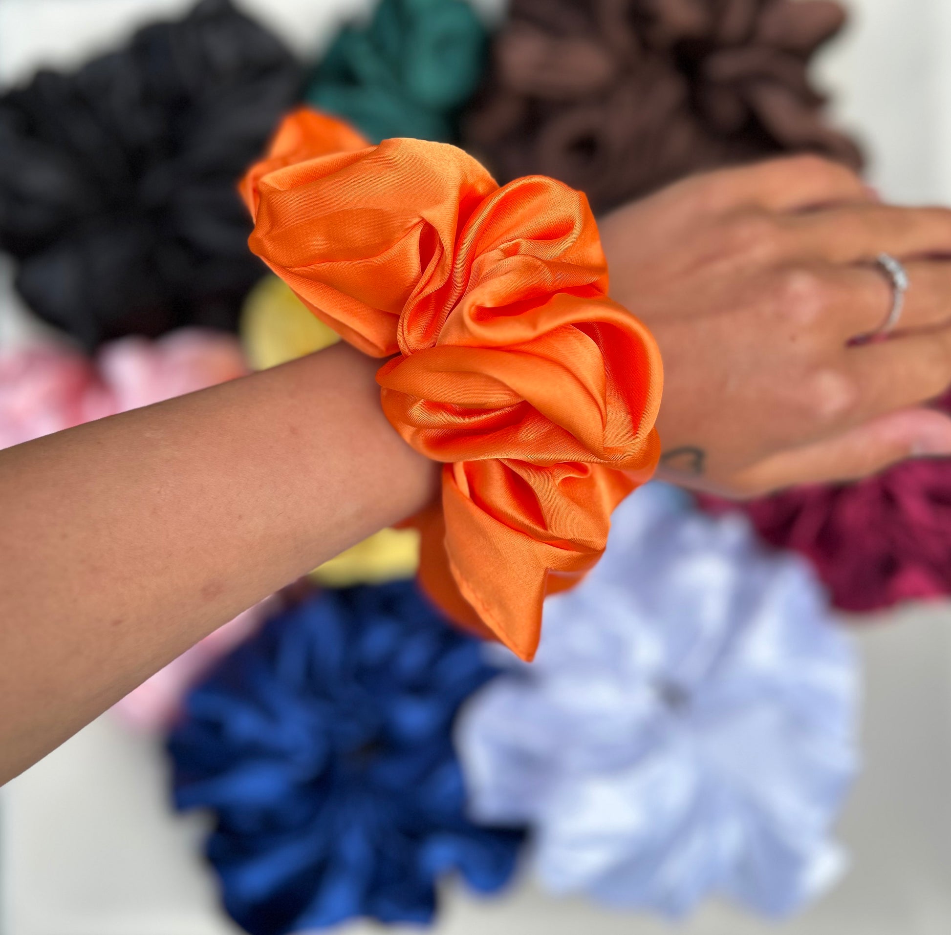Upgrade your hair accessory game with our XL Satin Scrunchies. Made with stretchy, high quality material, these extra large scrunchies provide the perfect hold without causing damage to your hair. Say goodbye to bad hair days and hello to effortless style.